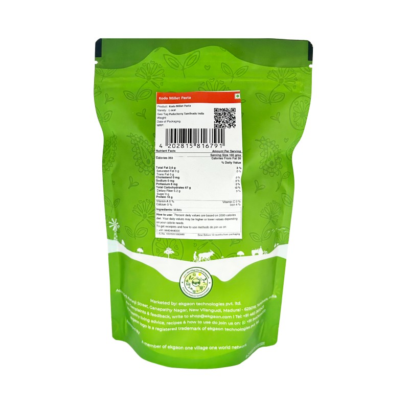 Kodo millet pasta is a healthy alternative to traditional wheat pasta, made primarily from kodo millet flour, a gluten-free grain, and sometimes with a small amount of whole wheat flour for binding and texture. It offers a slightly nutty flavor and a firmer texture compared to regular pasta, making it a good choice for those seeking a nutritious meal