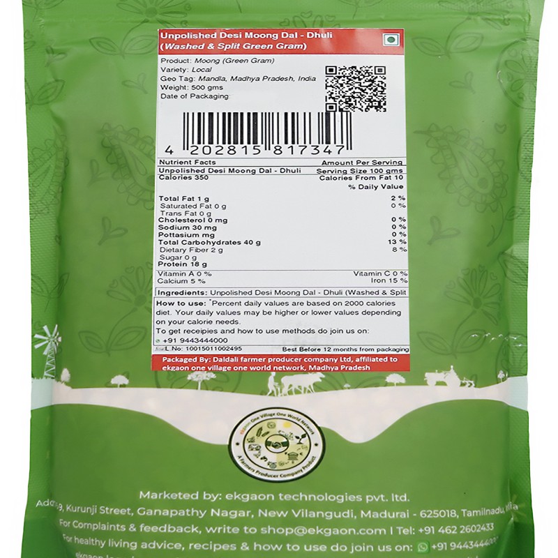 Product Name : Unpolished Desi Moong Dal - Dhuli (Washed & Split Green Gram)