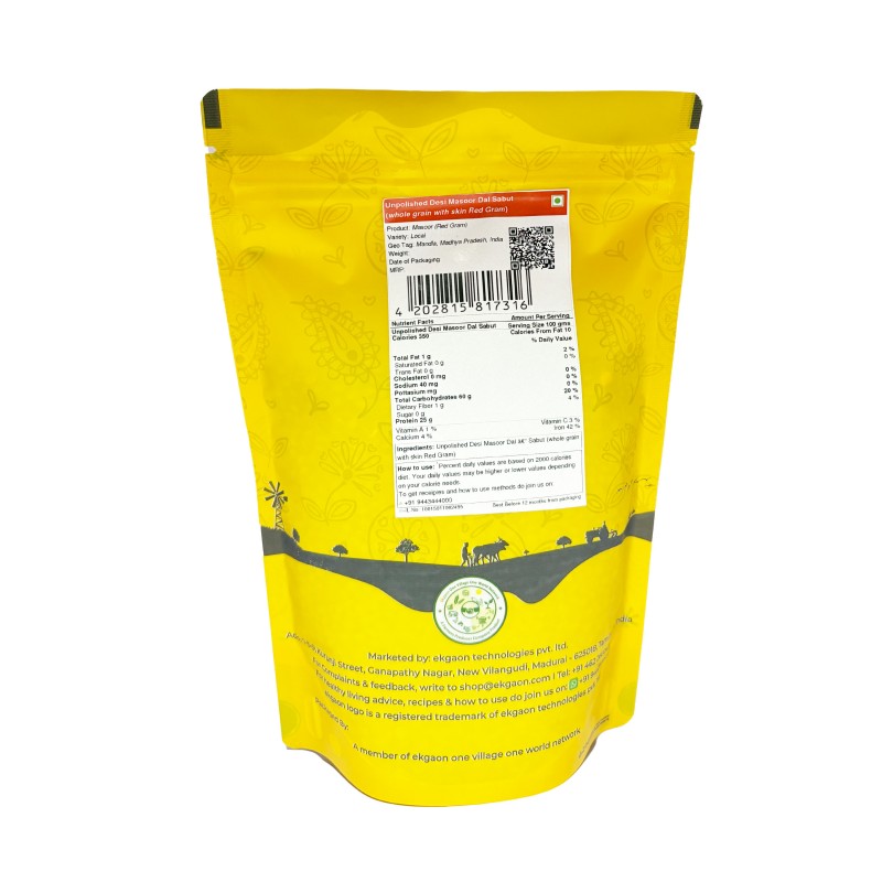Product Name : Unpolished Desi Masoor Dal – Sabut (whole grain with skin Red Gram)