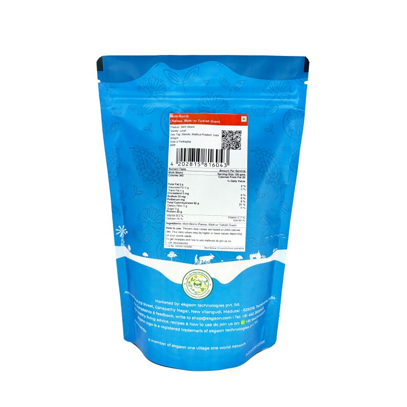Moth beans are rich in nutrition, 100g of raw, uncooked moth bean seeds contain 343 calories, 23 g of protein, 62 g of carbohydrate and 1.6 g of fat.As is the case with other legumes, this pulse does contain antinutritional factors that limit available protein. Soaking and cooking moth beans before consumption helps to break down antinutritional factors and makes the protein more digestible.
