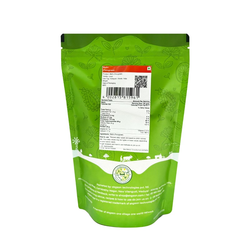 Fenugreek seeds, an ancient spice, with a slightly bitter taste, are small, hard, yellowish-brown, smooth and oblong shaped.The fresh tender green leaves of the fenugreek plant, called methi or kasoori methi, have a bitter-sweet flavor and used as a regular green vegetable in Indian cuisine like dals and vegetables